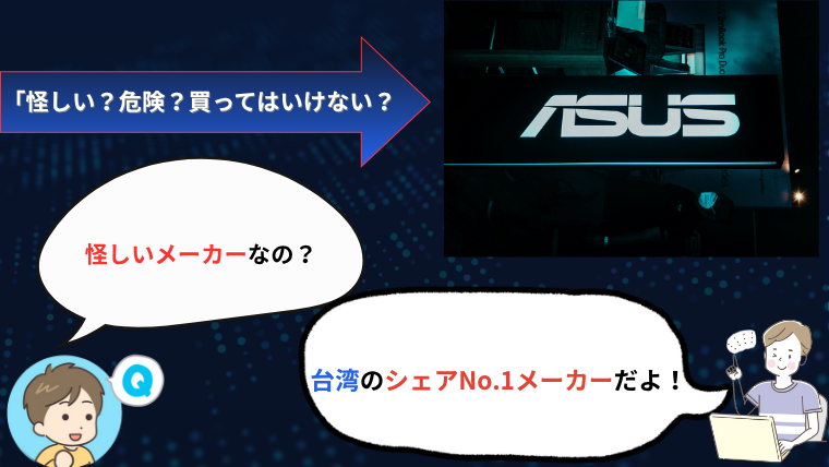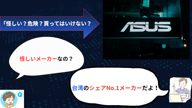 「怪しい」という声は一部ありますが、ASUSは世界的に信頼されている大手PCメーカーです。