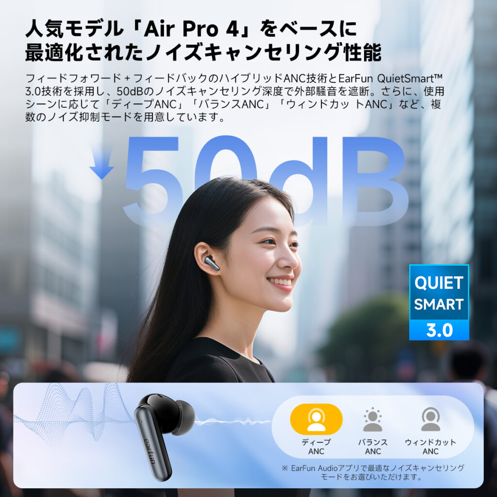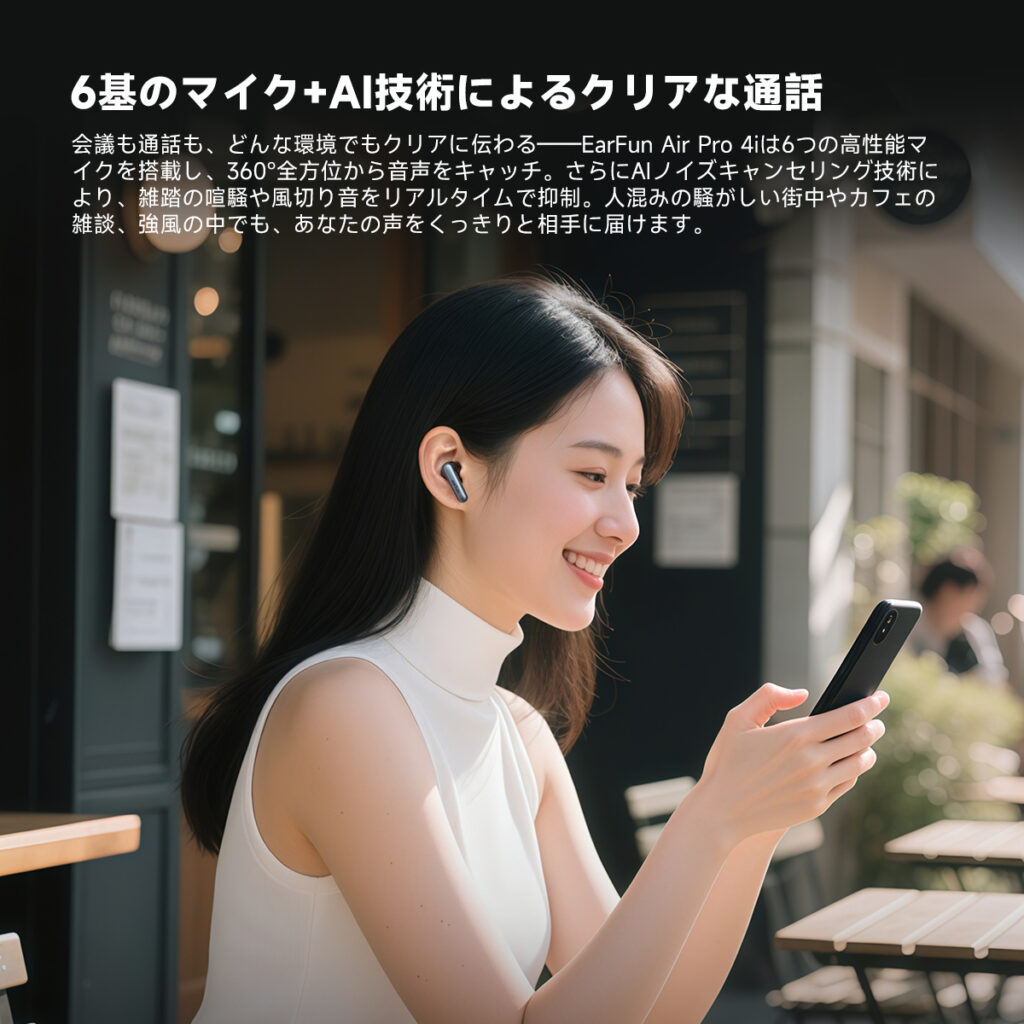 例えば、現在のフラッグシップモデルである「EarFun Air pro 4」は以下の点で高評価です。