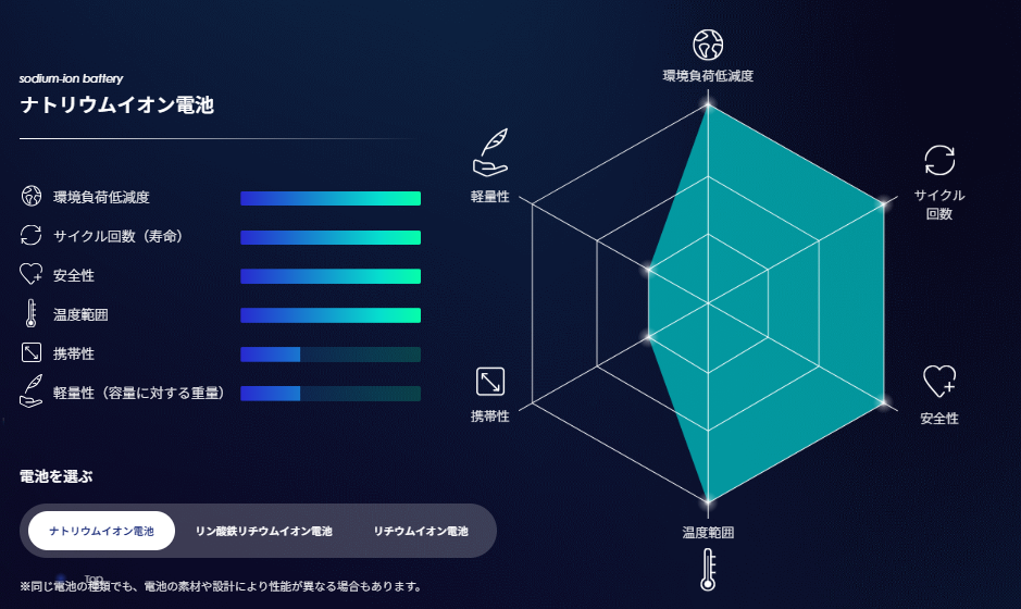 ✅ レアメタル不要で環境負荷が小さく、SDGsにも寄与